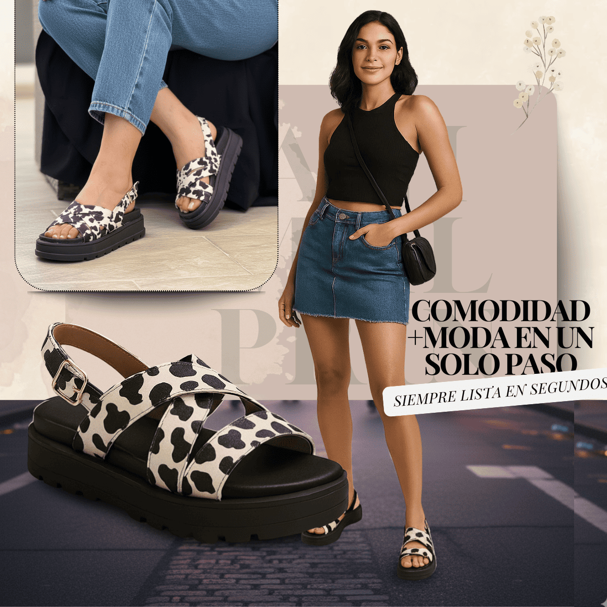 Camina todo el día con estilo, única sandalia ergonómica con diseño animal print que protege tu salud de pies y combina con todo
